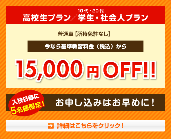 本免許取得後に練習できます。(卒業後1年以内1回)